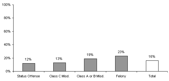 at least one prior referrals, on average, only 30% of juveniles referred