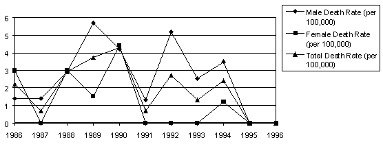 Travis County Youth (Below Age 18) Suicide Death Rates (per 100,000); 1986-1996