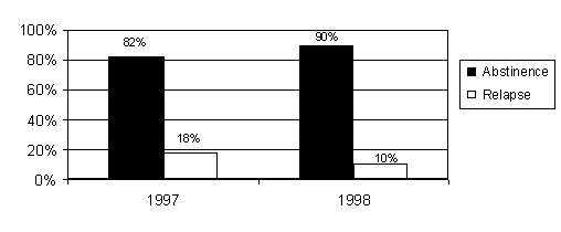 Abstinence rates for TCADA clients have gone up and the percentage of clients relapsing after treatment has decreased from 1997 to 1998.